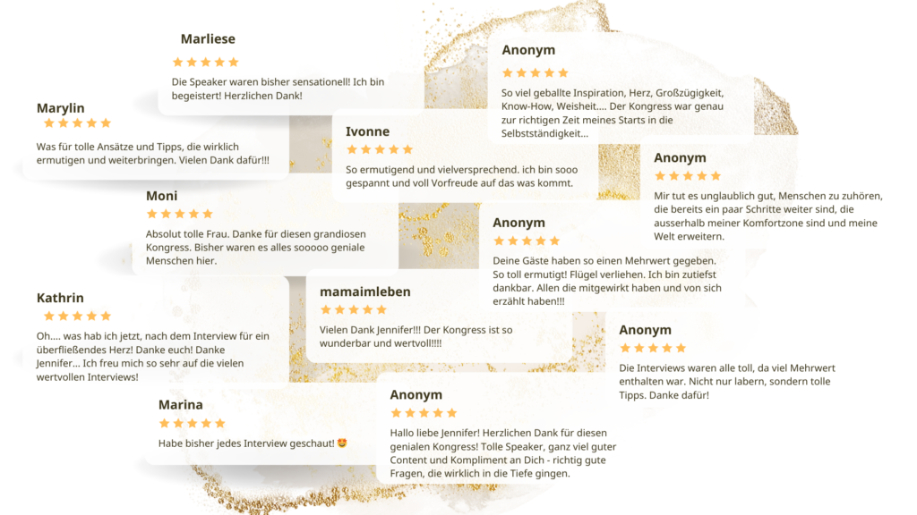 Während der Kongress-Zeit vom 30.1. bis 3.2.2025 erhältst du E-Mails mit den Links zu den Interviews, die du dir jeweils 24 Stunden KOSTENLOS anschauen kannst.